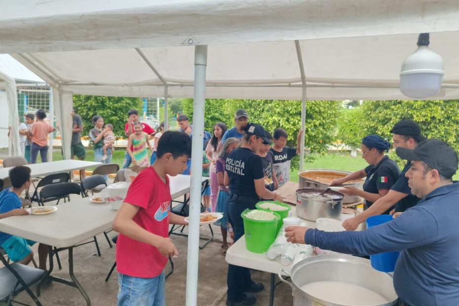 En las últimas 24 horas, a través del Plan Tajín de la Secretaría de Seguridad Pública (SSP), se han distribuido 2 mil 559 raciones de comida caliente y 35 paquetes alimentarios a familias damnificadas por la vaguada y la depresión tropical 90E en la zona norte del estado.