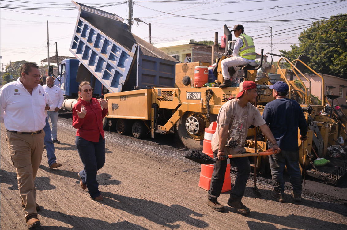 Los trabajos contemplan la limpieza y construcción de cunetas, el desazolve de alcantarillas, el fresado de la superficie existente y la colocación de una nueva carpeta asfáltica, acciones que permiten mejorar la superficie de rodamiento, reforzar la seguridad vial y garantizar un adecuado desalojo de aguas pluviales.