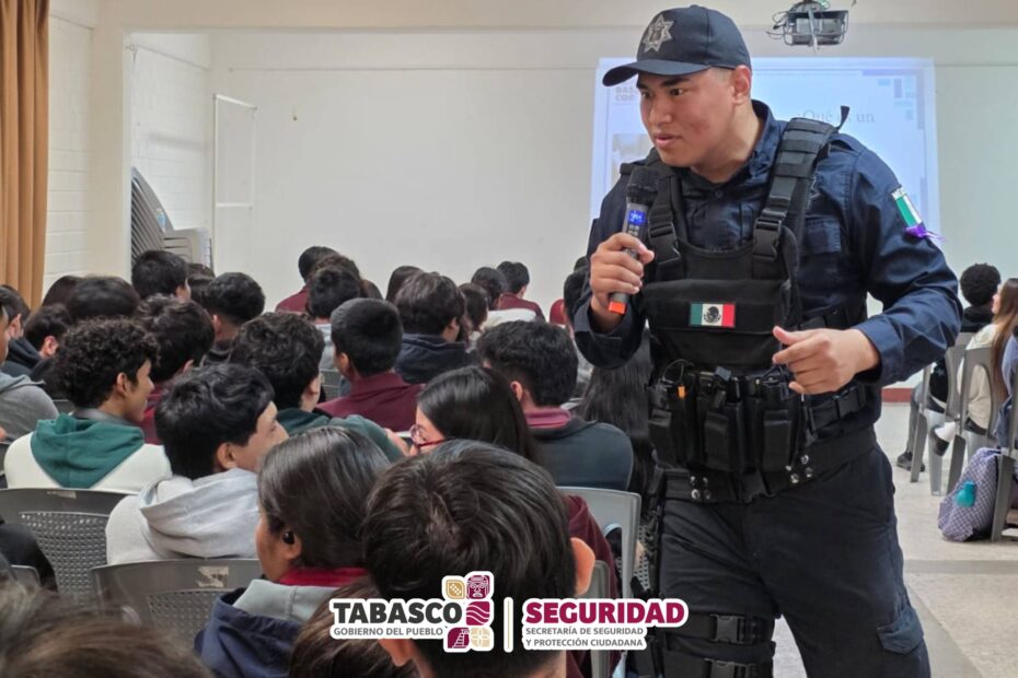 La Secretaría de Seguridad y Protección Ciudadana (SSPC), a través de su Unidad de Vinculación y Comunicación Social, impartió una plática informativa y reflexiva sobre “Faltas y Delitos: Lo que debes saber” a estudiantes del CBTIS 163, ubicado en la colonia Guadalupe Borja.