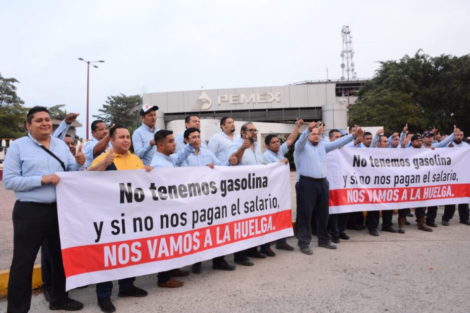 Operadores de transporte de la Sección 44 del Sindicato de Trabajadores Petroleros de la República Mexicana (STPRM) realizaron una manifestación en el Centro Administrativo de Petróleos Mexicanos (Pemex) para exigir el pago pendiente destinado a la compra de gasolina y diésel para las unidades que trasladan a trabajadores administrativos y de campo.