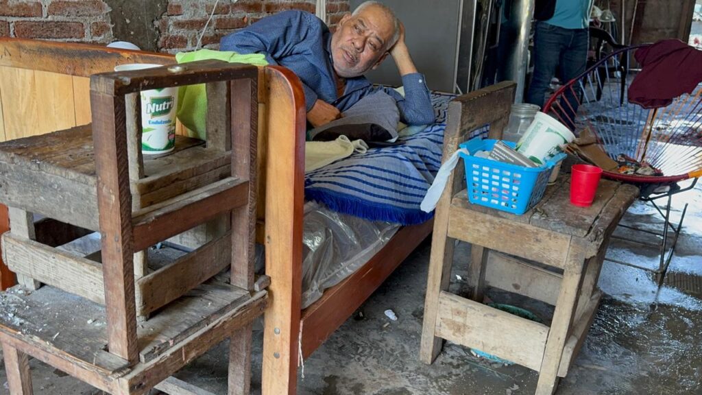 El interior de las viviendas quedó con charcos y lodo, la señora Petra Sena no terminó de limpiar su hogar, pues tiene que cuidar de su esposo.