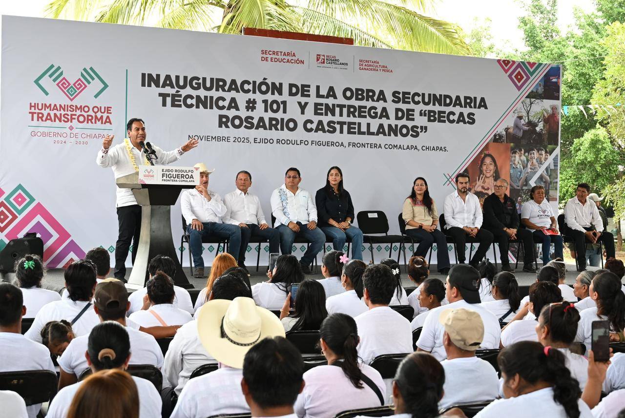 El secretario de Educación, Roger Mandujano Ayala, informó que con Chiapas Puede, que contempla una inversión superior a mil millones de pesos, se entregan en este municipio las primeras 674 becas a personas que están aprendiendo a leer y escribir. Afirmó que la alfabetización es un acto de justicia social y de liberación, donde “el arma es el lápiz y el libro, y la batalla se libra en los pupitres y las aulas”.