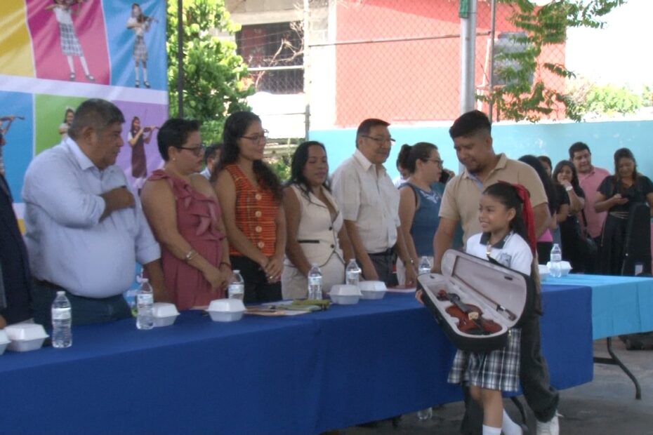 Maestros y directivos de la Escuela Primaria Revolución Mexicana realizaron la entrega de instrumentos a niños que conforman la Primera Orquesta de Cámara Infantil en Tapachula por lo que, dentro del protocolo entregaron violines a 17 alumnos; 15 estudiantes de la primaria y 2 alumnas de nivel secundaria.