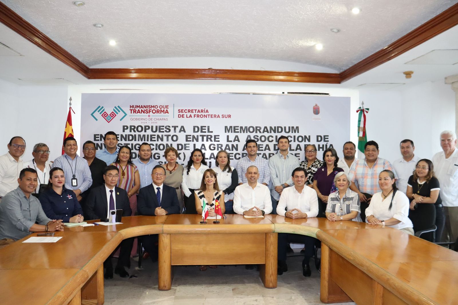 La Secretaría de la Frontera Sur, encabezada por María Amalia Toriello Elorza, con la participación del subsecretario de Seguimiento y Desarrollo Socioeconómico, Carlos Andrés Siles Torres, sostuvo un encuentro de trabajo con integrantes de la Asociación de Investigación de la Gran Área de la Bahía (Guang Dong-HK), encabezados por el vicepresidente de Desarrollo Económico y Tecnológico de The Greater Bay Area, Allen Cheng, y el presidente de Inno Drug Group Yin Yunlu, con el propósito de generar un primer acercamiento que permita identificar áreas de oportunidad para la cooperación económica y el desarrollo regional.