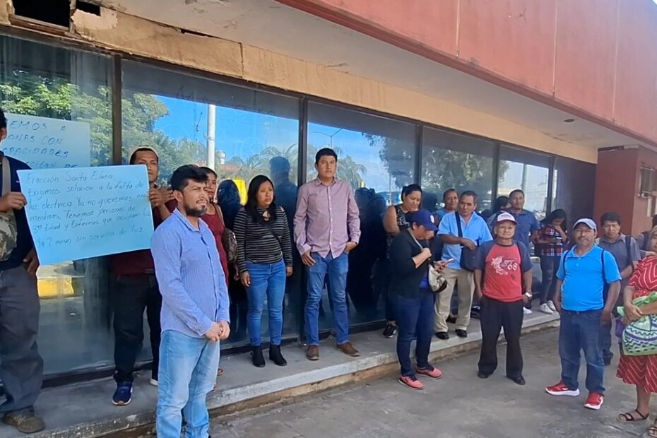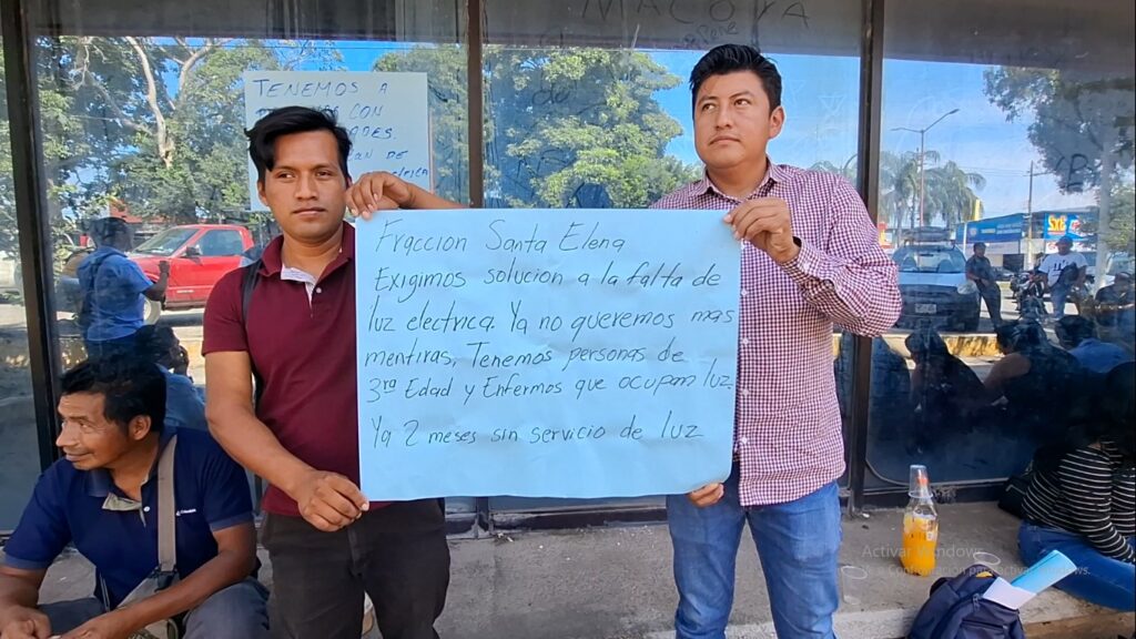Habitantes de la fracción Santa Elena, zona alta del municipio de Tapachula, se manifestaron este martes frente a las oficinas de la Comisión Federal de Electricidad (CFE), para exigir una solución a la falta de servicio eléctrico que han padecido durante más de dos meses.