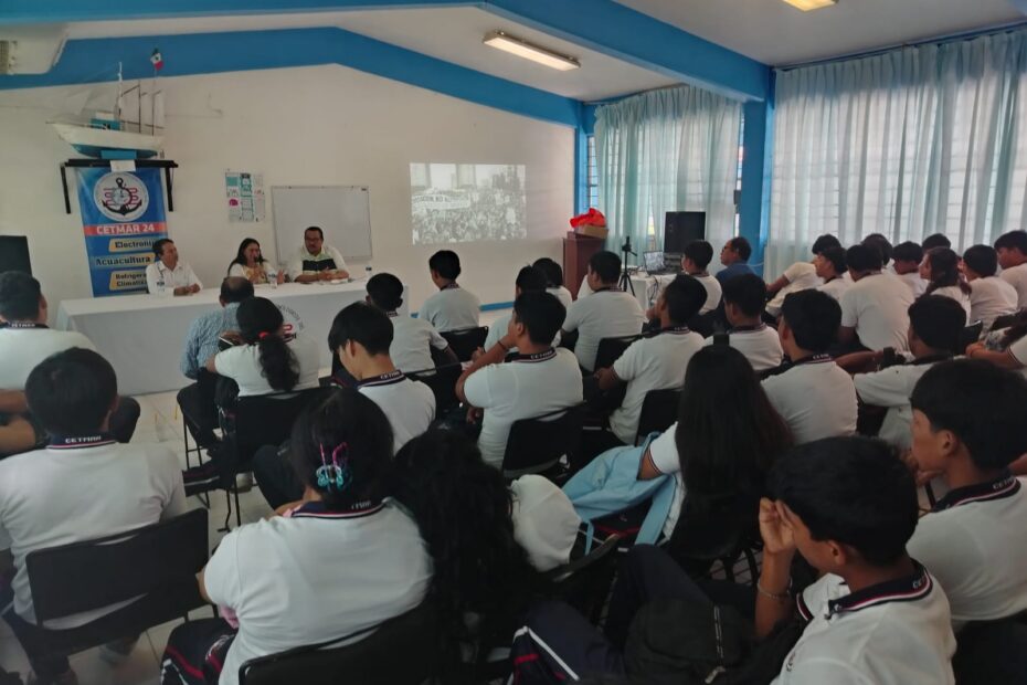 En el marco de la conmemoración del 57 aniversario de los hechos de Tlatelolco, el 2 de octubre de 1968 en la Plaza de las Tres Culturas de México, la Casa de la Cultura Puerto Madero del CONECULTA realizó el “Conversatorio 2 de octubre No se Olvida, por la Libertad de Pensamiento y Derechos de las Juventudes”, con la participación de 70 estudiantes, hombres y mujeres del Cetmar 24 Puerto Madero