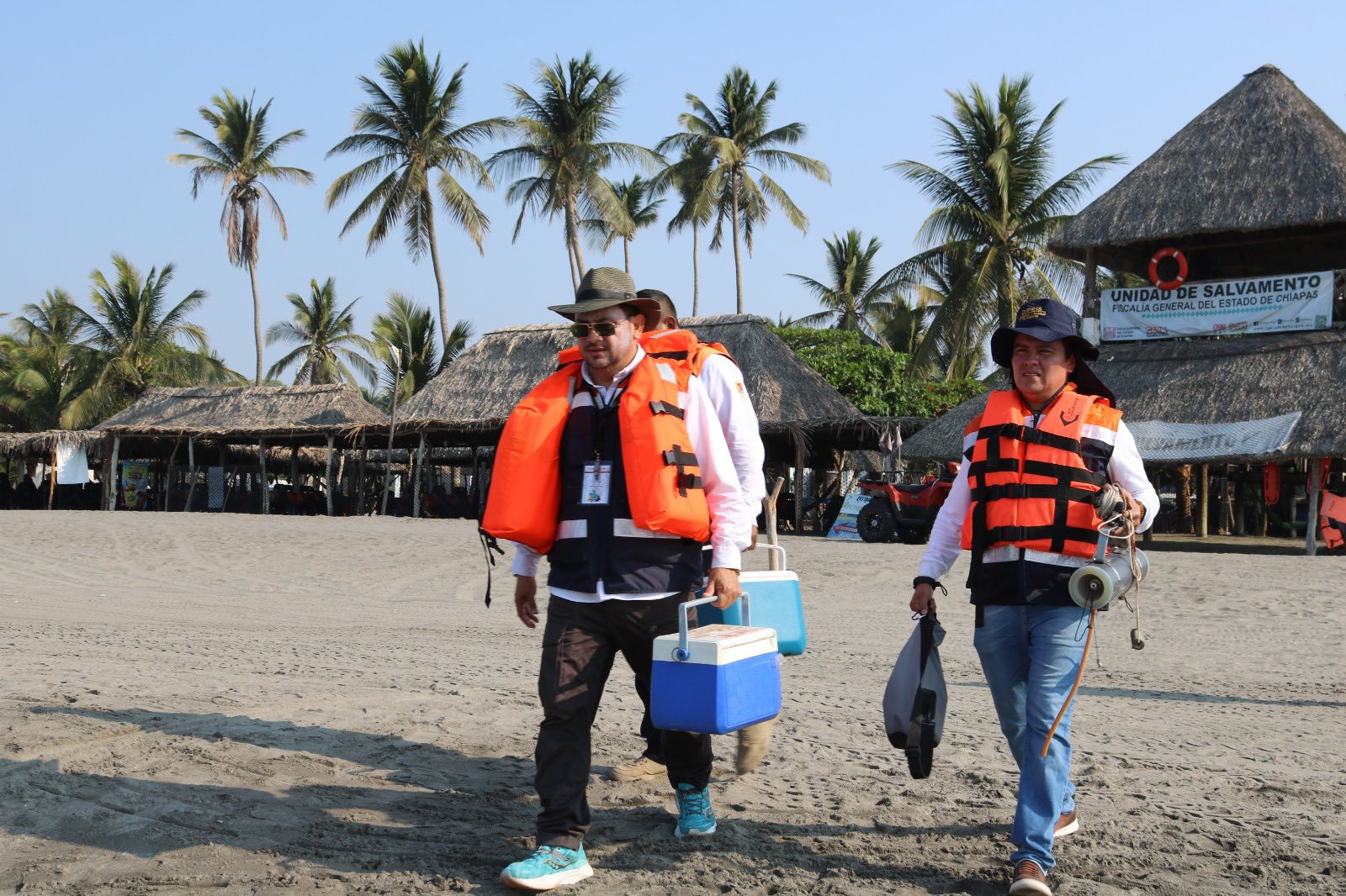Las acciones de vigilancia sanitaria se llevan a cabo en las jurisdicciones sanitarias de Tapachula y Tonalá, con el apoyo de las brigadas de Protección contra Riesgos Sanitarios, el LESP y la Vigésima Segunda Zona Naval de Puerto Chiapas.