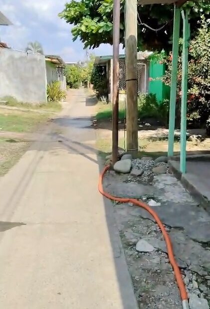 Vecinos de Vida Mejor advierten el peligro por cable de la CFE en el suelo.