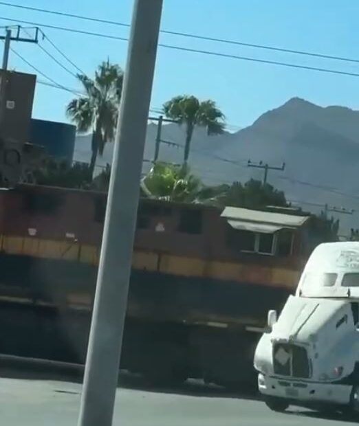 Tráiler intenta ganarle el paso al tren y termina arrastrado en Saltillo