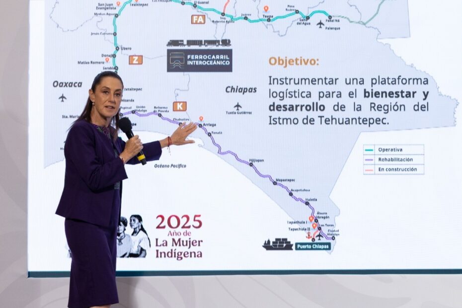La Presidenta de México, Claudia Sheinbaum Pardo, resaltó que en noviembre se inaugura el primer tramo de la Línea K del Tren Interoceánico y se avanza con el Gobierno de Guatemala para que dicha línea llegue al país centroamericano. Mientras que el tramo Roberto Ayala–Dos Bocas de la Línea FA permitirá llevar parte de la producción de la Refinería Olmeca al sureste del país.