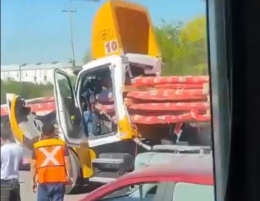 El accidente ocurrió la tarde del sábado en el kilómetro 25+500, cuando el conductor, que trasladaba vigas de acero en una plataforma, realizó un frenado repentino antes de un retorno. Esto provocó que las cintas de sujeción fallaran y que el material se desplazara hacia la cabina.