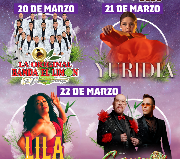 El programa arranca el 20 de marzo con La Original Banda El Limón; continúa el 21 de marzo con la presentación estelar de Yuridia; y cierra el 22 de marzo con Lila Downs y Grupo Cañaveral, además de la participación de agrupaciones regionales y propuestas culturales a lo largo de cada jornada.