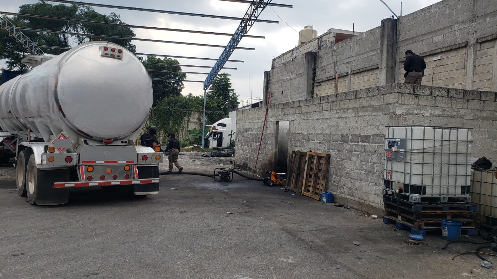 El operativo fue ejecutado por elementos de la Policía Federal Ministerial (PFM), en coordinación con peritos del Centro Federal Pericial Forense (CFPF) de la Agencia de Investigación Criminal (AIC). En el lugar se aseguraron dos contenedores cilíndricos metálicos, dos semirremolques tipo pipa, dos semirremolques tipo jaula, dos semirremolques con caja seca y un semirremolque tipo plana.