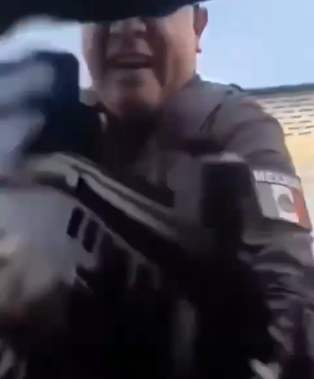 Posteriormente, ya con el reporte activo, elementos de Seguridad Pública ubicaron nuevamente al grupo y los interceptaron. En el video se aprecia a los uniformados ordenándoles descender del vehículo con armas desenfundadas, siguiendo protocolos de control de riesgo.