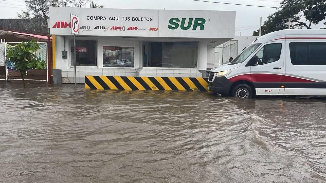 En la central camionera, el nivel del agua alcanzó hasta las rodillas de los pasajeros en algunos puntos. También se registraron anegaciones severas en las avenidas Juan Osorio López y Transístmica.