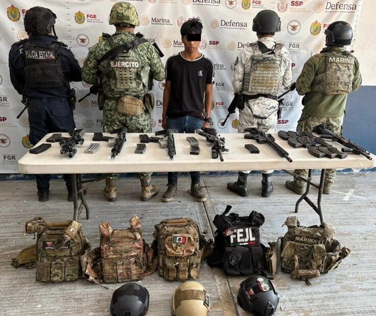 En tanto, por el delito de portación ilegal de armas de fuego, fueron detenidas cuatro personas, entre ellas un menor de edad, a quienes se les decomisaron seis armas largas y dos cortas, cargadores, cartuchos útiles, así como dosis de presunto cristal, una motocicleta y una camioneta con reporte de robo.