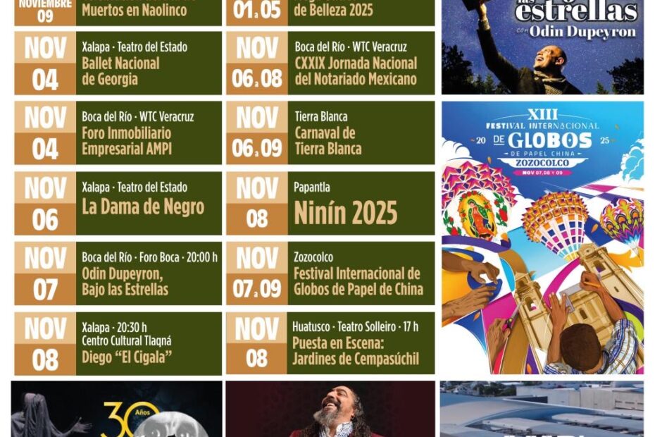 El ambiente festivo se siente en todo el estado: en Tierra Blanca se celebra el Carnaval, Zozocolco se llena de colores con el Festival Internacional de Globos de Papel de China, y en Papantla continúa el tradicional Festival Ninín dedicado al Día de Muertos.