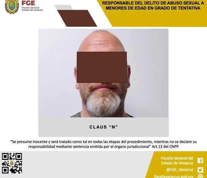 Veracruz, Ver. La Fiscalía General del Estado de Veracruz, a través de la Fiscalía Coordinadora Especializada en Delitos contra las Mujeres, Feminicidio, Familia y Trata de Personas, informó la vinculación a proceso de Claus “N” como presunto responsable del delito de abuso sexual a menores de edad en grado de tentativa.