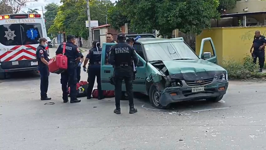 Un fuerte accidente se registró en la calle 145 con 48 de la colonia San José Tecoh, al sur de Mérida, donde una camioneta Chevrolet colisionó contra un vehículo Aveo, dejando personas lesionadas y daños materiales.