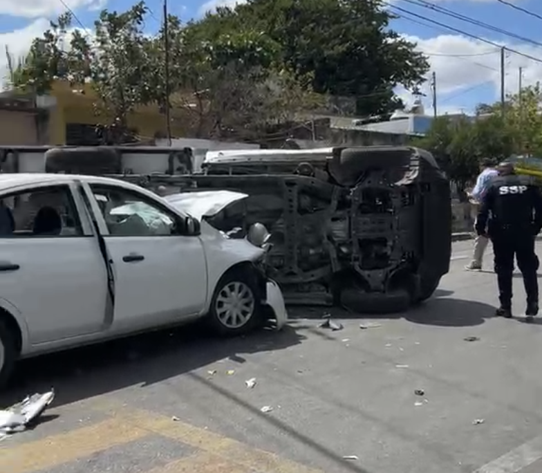 Un accidente vial interrumpió la circulación en un cruce del sur de Mérida luego de que varios vehículos se vieran involucrados en una colisión que terminó con una unidad volcada y una persona lesionada. El hecho generó movilización de cuerpos de emergencia y agentes de tránsito en la zona.