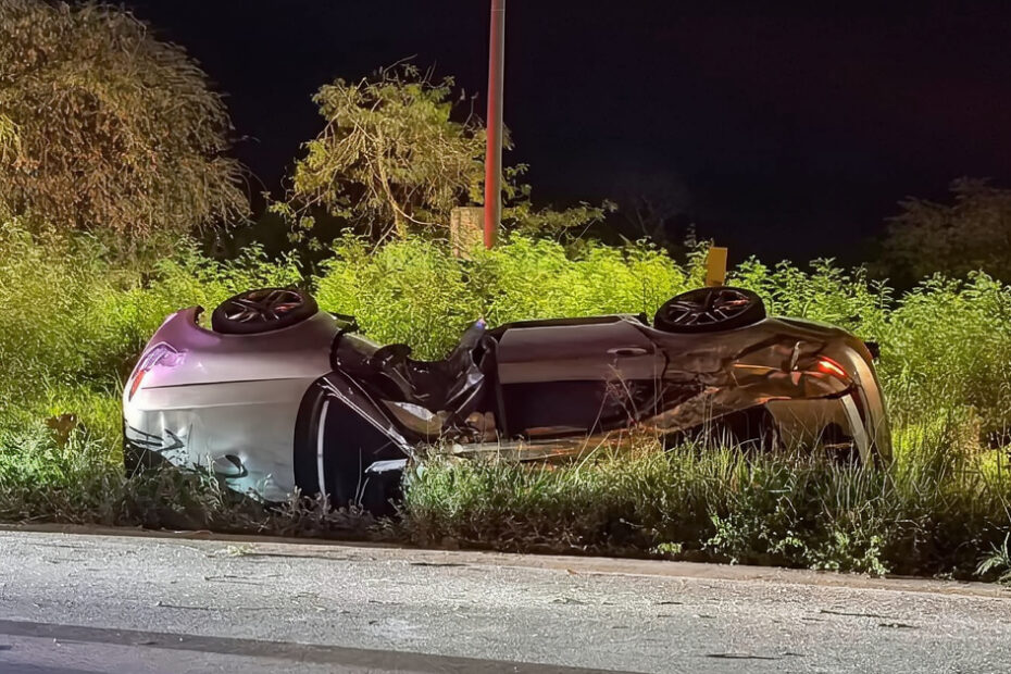 Un automóvil Audi terminó volcado y con daños severos tras impactarse contra un poste de alumbrado público en la carretera Mérida–Progreso, a la altura del kilómetro 27+500, donde sus ocupantes resultaron con lesiones leves.