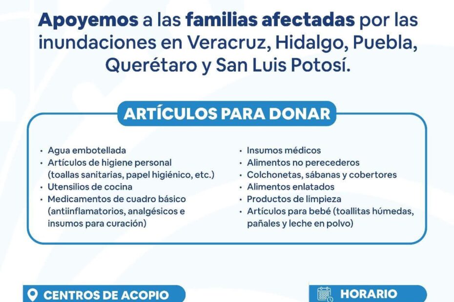 El alcalde de Progreso, Erik Rihani González invitó a toda la comunidad a sumarse a la colecta de ayuda en apoyo a las familias afectadas por las recientes inundaciones en los estados de Veracruz, Hidalgo, Puebla, Querétaro y San Luis Potosí.