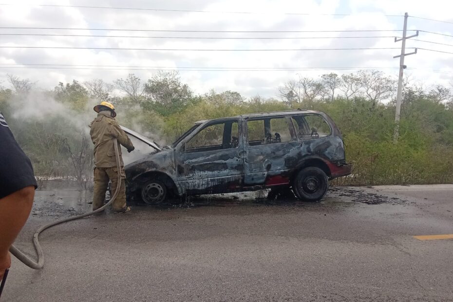 Una camioneta se incendió mientras circulaba sobre la carretera Hunucmá–Sisal, a la altura del kilómetro 6, donde el conductor logró detenerse y ponerse a salvo antes de que el fuego consumiera la unidad.