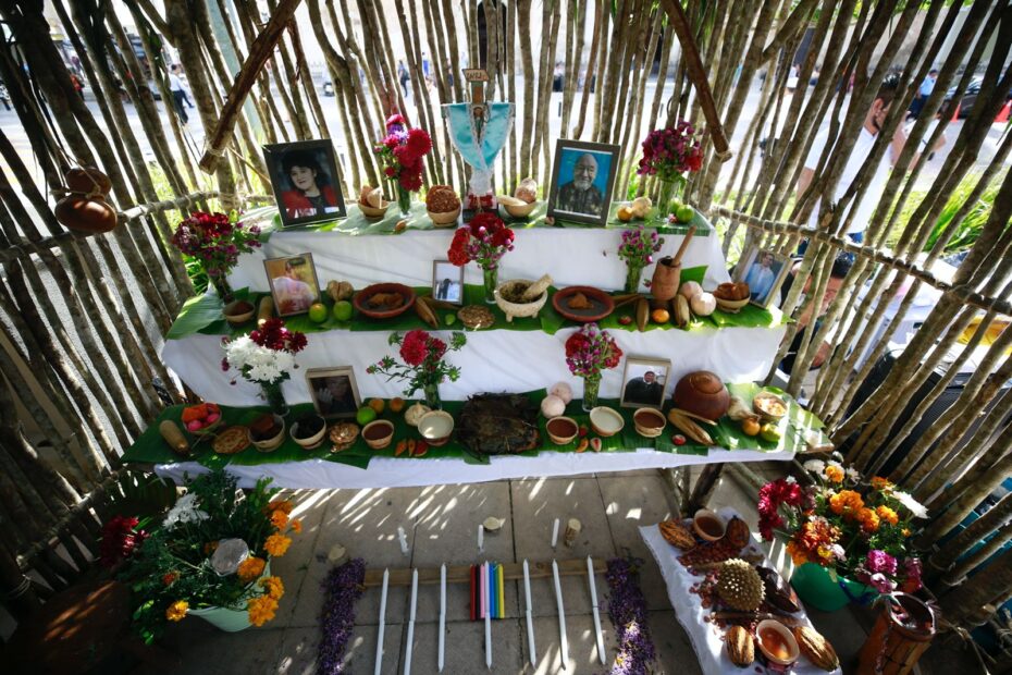 “Hoy este altar es profundamente representativo para nosotros; es un tributo, una manera de decirles a nuestros familiares y amigos que partieron: ven, aquí está tu comida, tu bebida, lo que tanto disfrutabas. En este altar se reflejan nuestras raíces, todo lo que somos como pueblo y todo lo que significa nuestra cultura maya”, expresó.