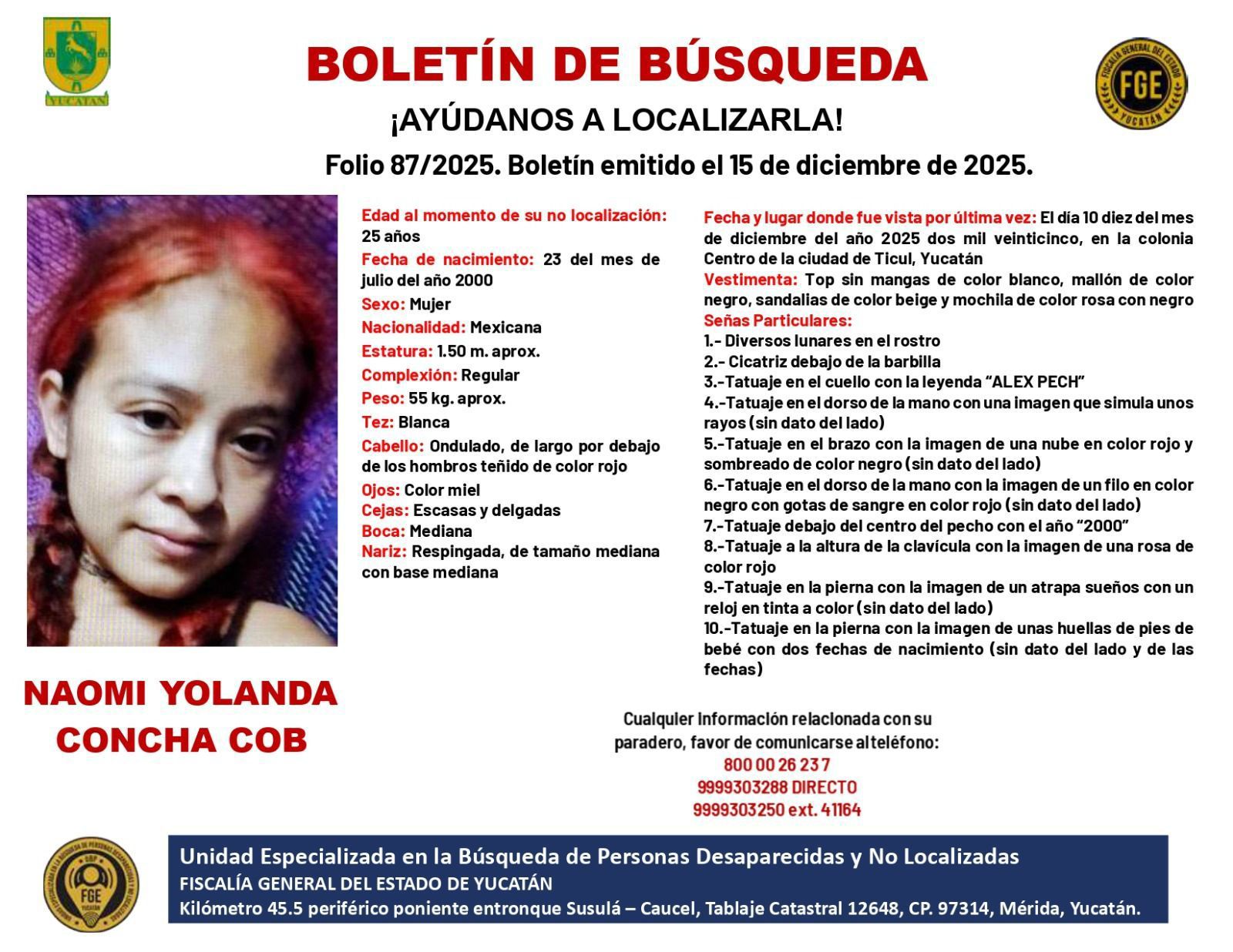 La joven fue vista por última vez el miércoles 10 diciembre cuando ingreso sola al bar “La prosperidad”, a consumir bebidas embriagantes.