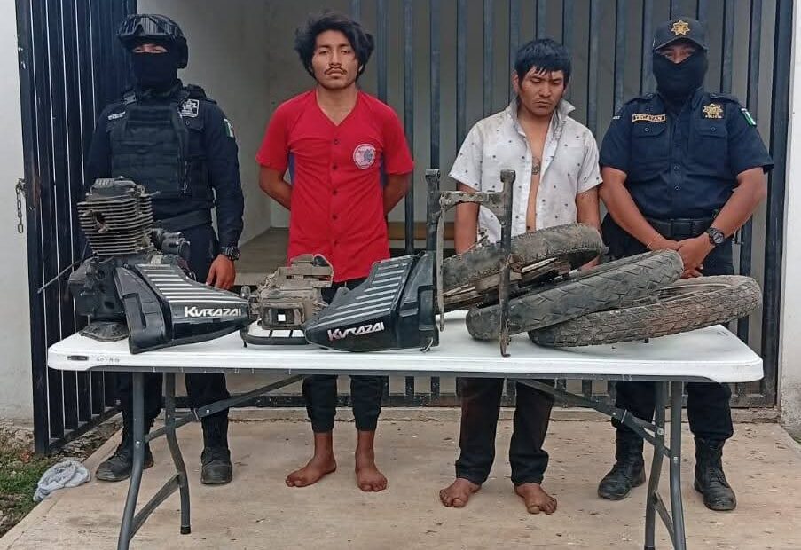 Resultado del operativo conjunto entre la Policía Municipal de Acanceh y la Policía Estatal, se logró localizar el mototaxi y asegurar a dos personas identificadas como P. M. P. C., de 19 años, y O. E. D. S., de 24 años.