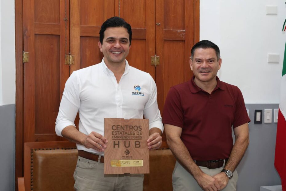 Para implementar un Hub de Emprendedores en Progreso, iniciativa que busca impulsar el talento local y apoyar a emprendedores y artesanos de ese municipio, el alcalde Erik Rihani González firmo un convenio de colaboración con el director del Instituto Yucateco de Emprendedores (IYEM) Salvador Vitelli Macías