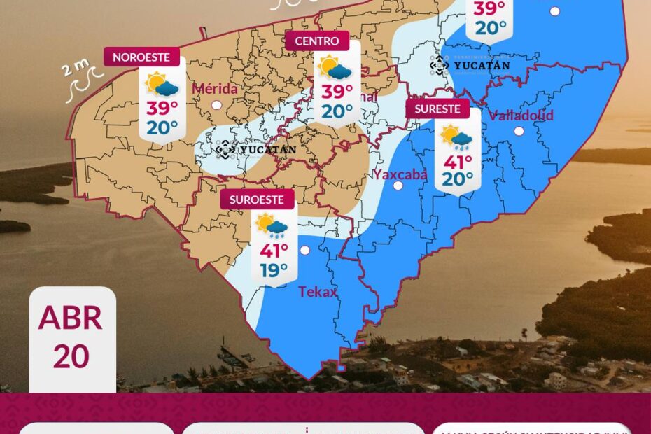En cuanto a las temperaturas, se prevé un ambiente muy caluroso, con máximas de entre 37 y 39°C en el interior del estado. Sin embargo, en municipios como Valladolid, Tinum, Chankom, Chichimilá, Kaua, Cuncunul, Uayma, Peto, Tixmehuac y Teabo, los valores podrían alcanzar hasta los 41°C. En la zona costera, las temperaturas oscilarán entre los 27 y 29°C.