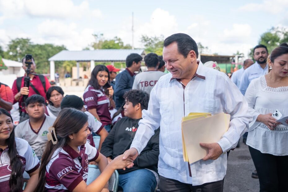 Durante una gira de trabajo por el municipio de Xocchel, el Gobernador Joaquín Díaz Mena encabezó la entrega de los trabajos de rehabilitación de la cancha de fútbol 7, con el objetivo de ofrecer a las y los jóvenes un espacio digno y seguro para realizar actividades deportivas, mediante una inversión estatal de dos millones 752 mil 418 pesos.