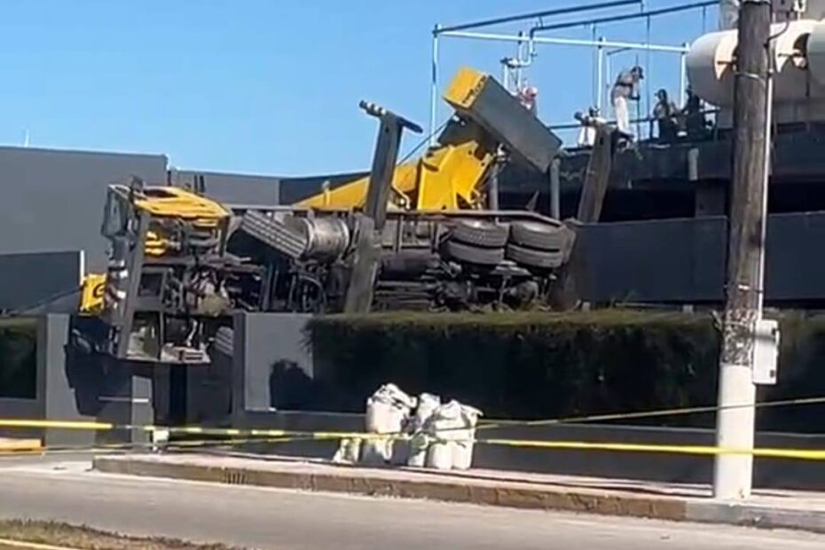 Una grúa pesada volcó dentro de una congeladora ubicada en Puerto Progreso, incidente que dejó a un operador con lesiones leves y generó la movilización de cuerpos de auxilio en la zona industrial.