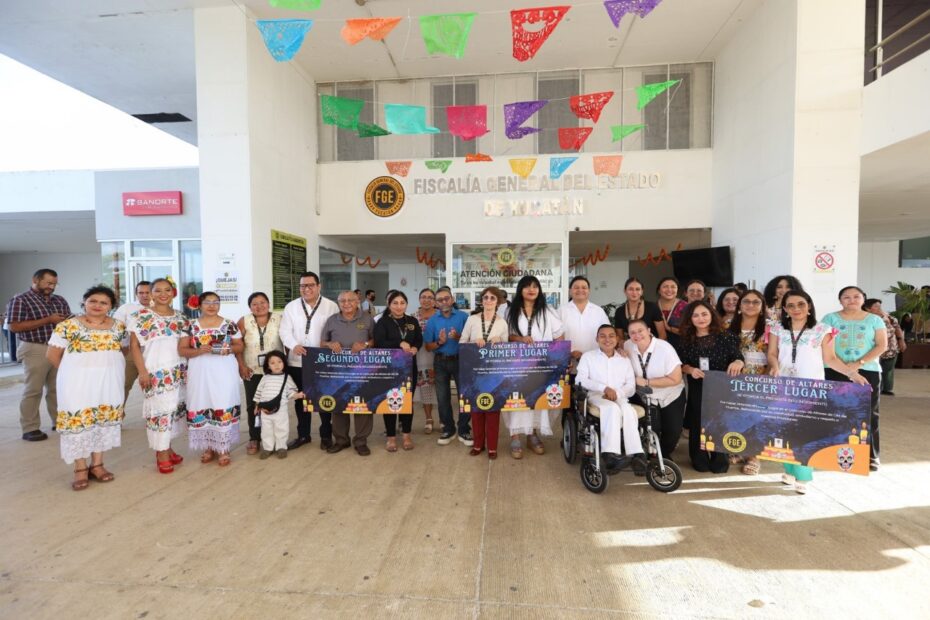 Con una emotiva colección de ofrendas, empleados y visitantes de la Fiscalía General del Estado (FGE), formaron parte de la tradición maya del Hanal Pixán, “Comida de las Ánimas”, que llenó de color, aroma de flores y alimentos, los corredores de la institución, tras la realización de la Muestra de Altares.