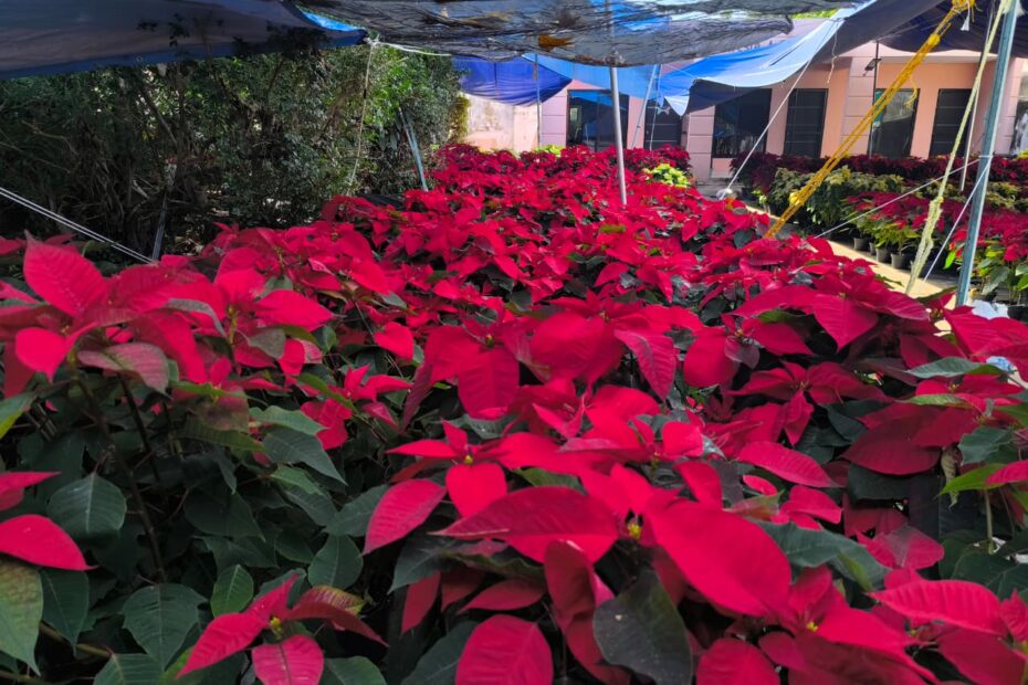 “Esta planta viene de los viveros baguts de Atlixco, Puebla, el cuidado es muy importante, la planta cuando llega se debe regar un día sí, un día no, directo a la tierra, no deben mojar la hoja, no debe darle el sol permanente porque si no la planta se pone triste. La planta le va a vivir hasta abril o mayo si la cuidan, la planta se va a deshojar y va a volver a crecer para reproducirse el año siguiente”.