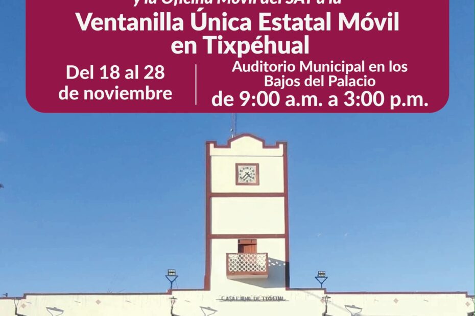 Del 18 al 28 de noviembre, la Ventanilla Única Estatal Móvil (VUEM) llegará al municipio de Tixpéhual para acercar más de 150 trámites y servicios gubernamentales a la población, con el objetivo de facilitar el acceso a gestiones oficiales y promover la equidad entre los municipios del interior de Yucatán.
