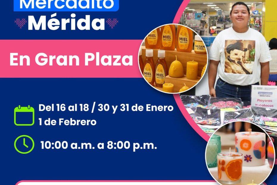 Si aún no sabes qué hacer este fin de semana, el Mercadito Mérida es una excelente opción. Se llevará a cabo del 16 al 18 de enero en la Gran Plaza, al norte de la ciudad, donde familias y visitantes podrán disfrutar de una amplia oferta de productos locales.