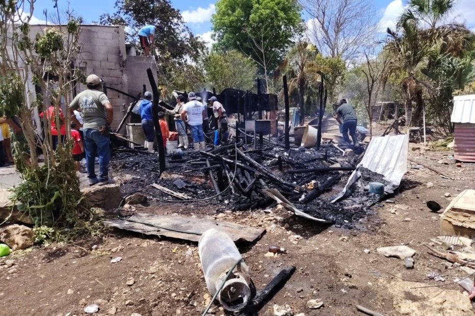 TIZIMÍN, Yucatán.— Un incendio registrado la tarde de ayer en la comisaría de Dzonot Tigre dejó severos daños materiales en la vivienda de la familia Aguayo Cham, luego de que las llamas consumieran gran parte del inmueble y sus pertenencias.