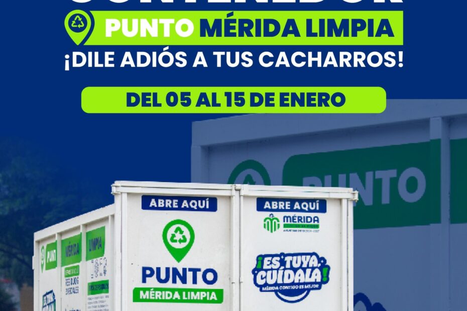 Este esquema se suma a las acciones para mantener una ciudad limpia, libre de cacharros y basura en la vía pública. Para conocer la ubicación exacta de los contenedores, la ciudadanía puede consultar el sitio web merida.gob.mx/meridalimpia/.
