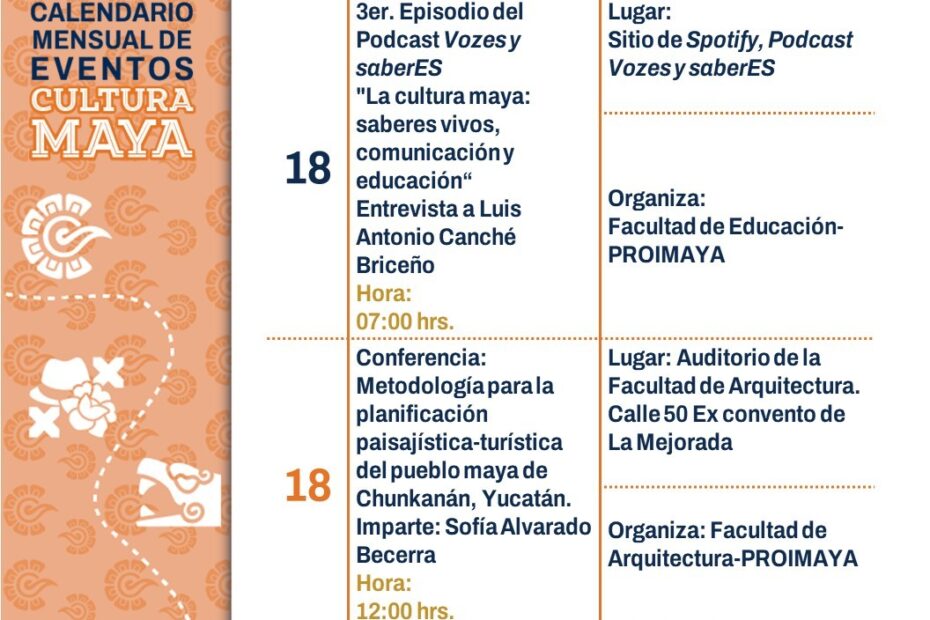 La cartelera completa puede consultarse en la página de Facebook PROIMAYA UADY y en los sitios oficiales de la Universidad Autónoma de Yucatán, donde se estarán compartiendo los carteles generales e individuales de cada actividad.