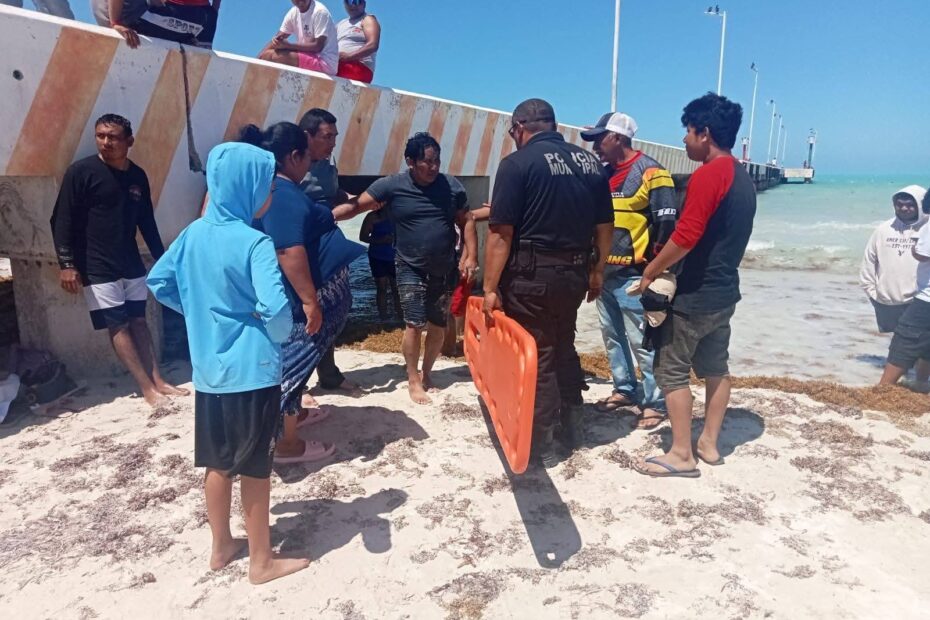 El hecho ocurrió en la zona del muelle de El Cuyo, donde Adrián M. E., de 31 años y originario de Kantunilkín, ingresó al mar y comenzó a tener dificultades para mantenerse a flote, por lo que fue necesaria la intervención de policías municipales.