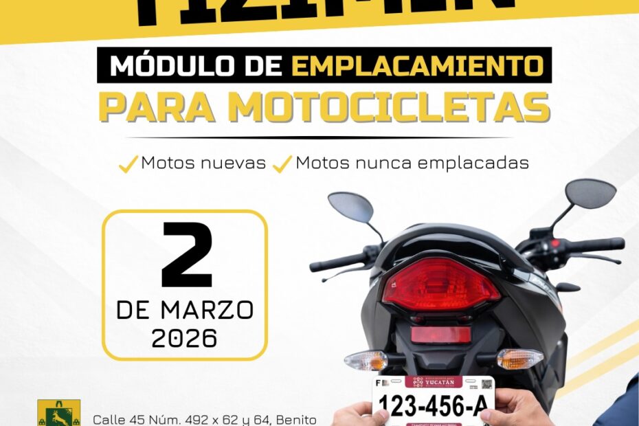 La Secretaría de Seguridad Pública de Yucatán anunció la apertura de un módulo de emplacamiento para motocicletas en Tizimín, con el objetivo de facilitar este trámite a habitantes del municipio y de comunidades del oriente del estado.