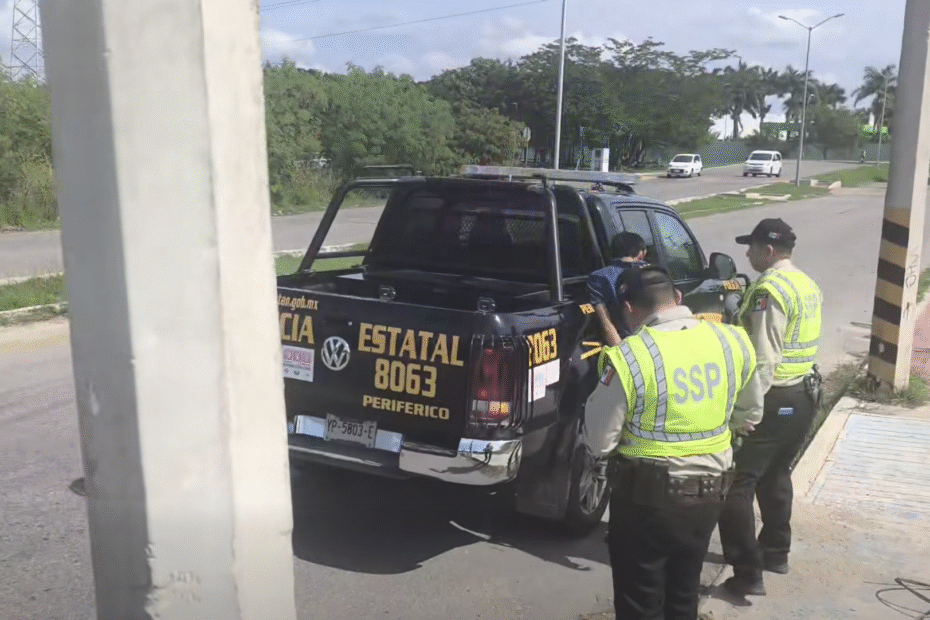 Un hombre fue asegurado por agentes de la Policía Estatal en el Periférico poniente de Mérida, luego de ser identificado como posible implicado en un hecho delictivo ocurrido en la zona. La movilización inició cuando la unidad 8063 respondió a un reporte y localizó al individuo, quien intentó huir cruzando los carriles de circulación.