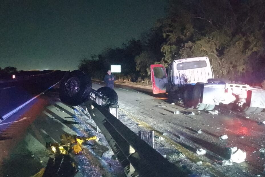 De acuerdo con los reportes, la pesada unidad colisionó contra la estructura de concreto y quedó atravesada sobre la lateral, antes de subir un puente en la zona.