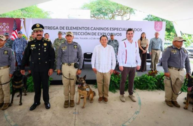 Como parte de la cooperación con Estados Unidos, la Secretaría de Seguridad Pública incorporó nuevos binomios caninos para detección de explosivos, fortaleciendo acciones preventivas y operativas en la protección de las familias yucatecas.