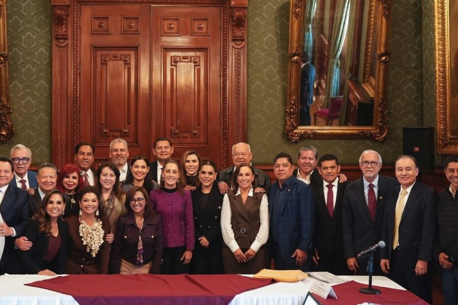 Desde el Palacio Nacional, la presidenta Claudia Sheinbaum acordó junto a gobernadores incorporadas a IMSS-Bienestar la implementación de acciones para consolidar el derecho del pueblo a la salud de manera gratuita.