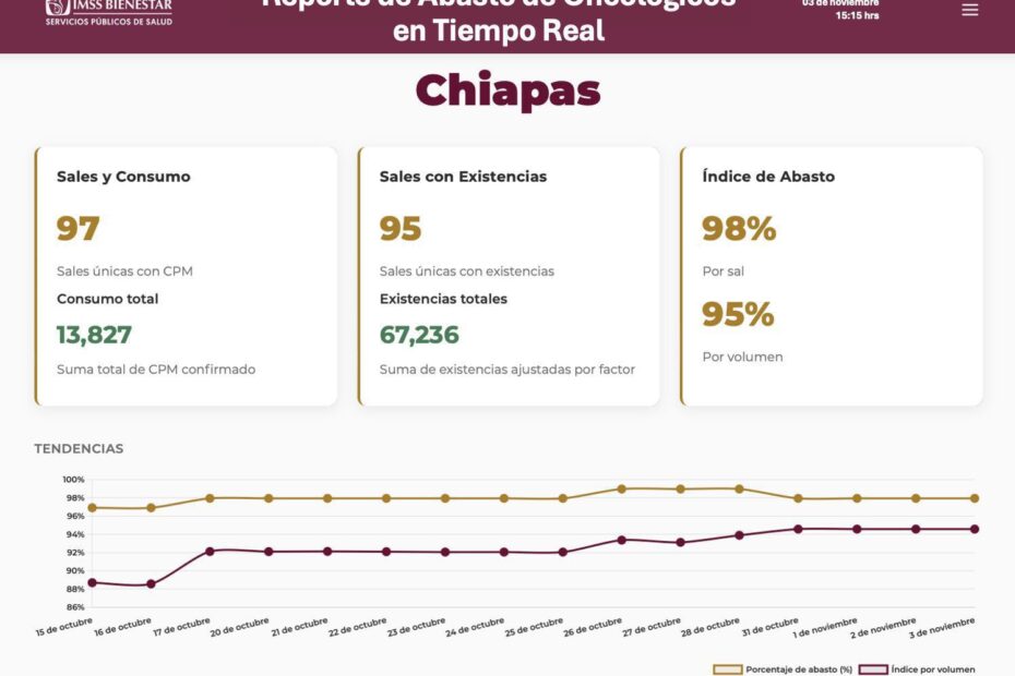 Precisó que esta cifra corresponde al último Reporte de Abasto de Oncológicos emitido por la federación al 3 de noviembre del presente año.