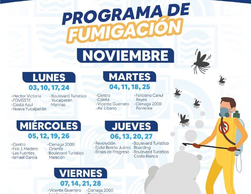 -El 10, 17 y 24 de noviembre: Héctor Victoria, FOVISSSTE, Costa Azul, Nueva Yucalpetén, Boulevard Turístico Yucalpetén, Marinas