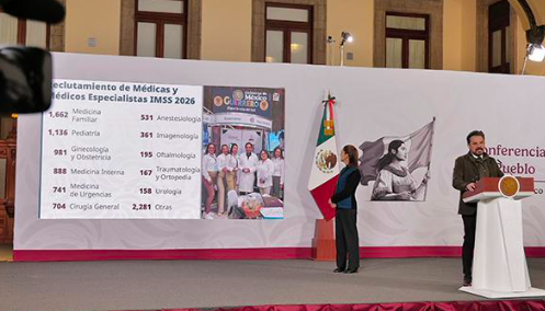 El director general del Instituto Mexicano del Seguro Social (IMSS), Zoé Robledo, informó que en el Reclutamiento de Médicas y Médicos Especialistas 2026, del 2 al 13 de marzo, participan los 35 Órganos de Operación Administrativa Desconcentrada (OOAD) para contratar a médicas y médicos de cerca de 70 especialidades como Medicina Familiar, Pediatría, Ginecología, Medicina Interna y Medicina de Urgencias.
